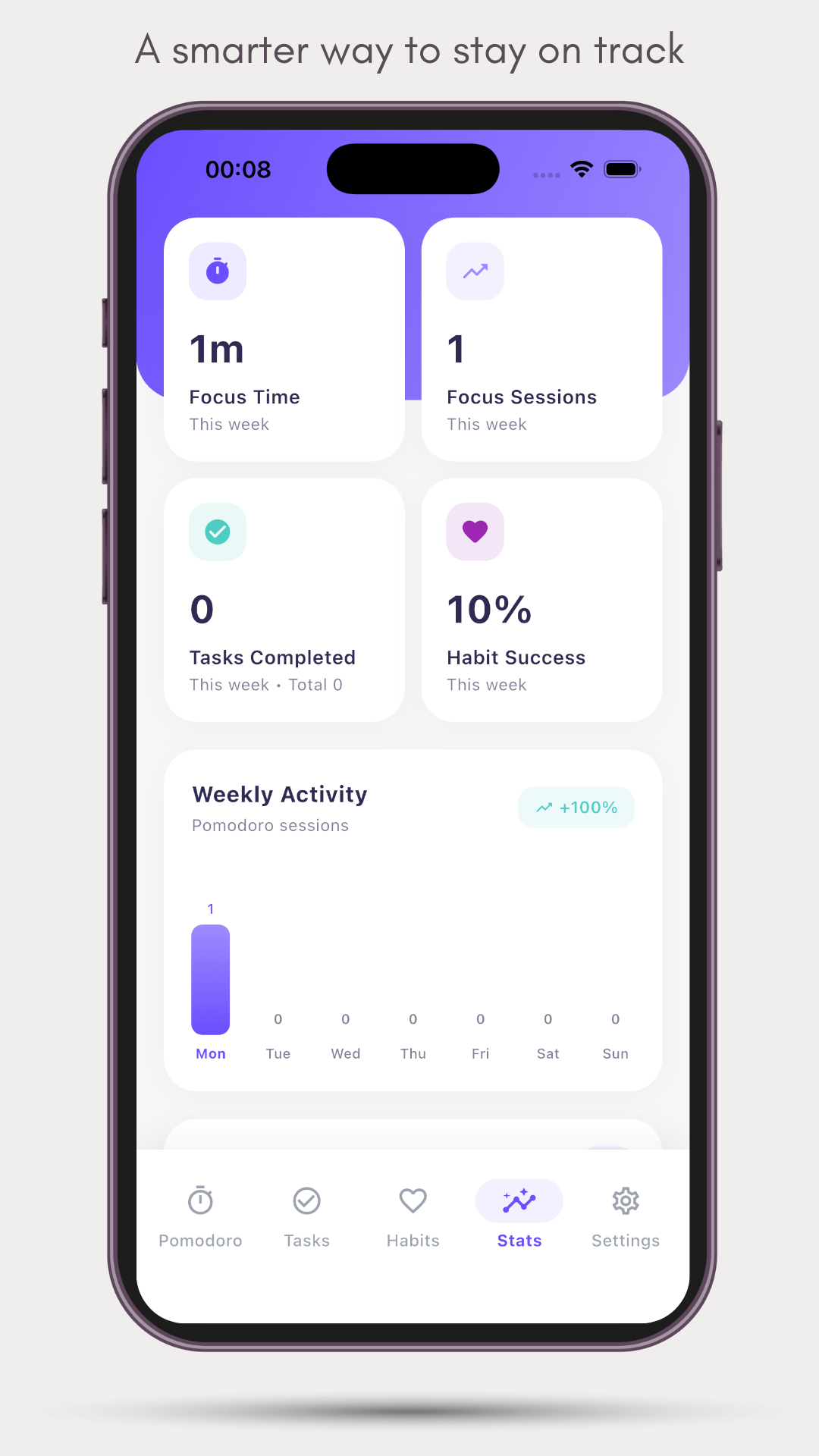 - Weekly stats to keep motivation high